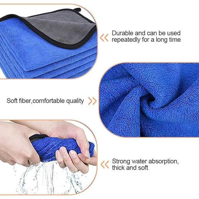 A super-absorbent, ultra-soft, and extra-thick cleaning towel set that delivers unmatched cleaning performance. Perfect for cars, bikes, home, kitchen, windows, electronics, and personal use. Safe on all surfaces, reusable, and long-lasting.